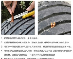 目前常用的方法就是貼片內(nèi)補(bǔ)法,先檢查輪胎的破損位置,然后仔細(xì)平整破損處,在孔洞周圍涂上膠水,將專用的橡膠貼片貼在破損處并壓緊牢固,然后涂上一層保護(hù)膠,完成輪胎的修補(bǔ)工作,這種方法與自行車上常用的輪胎修補(bǔ)方法基本一致。這種方法的缺點(diǎn)是,損壞的部件容易被雨水等污染物腐蝕,只有輪胎內(nèi)部才能修復(fù),輪胎完成后,應(yīng)進(jìn)行動態(tài)平衡校準(zhǔn)。但通常效果很好,價格不超過100元。