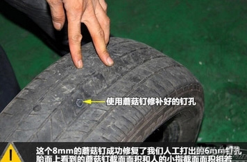 這種方法和上面的貼片類似,但補(bǔ)片更換成蘑菇狀的橡膠釘,將補(bǔ)片插入破損的孔中進(jìn)行補(bǔ)孔,相對而言,價格高于100元,而且孔的尺寸不能太大,但修復(fù)效果最好,相對安全徹底。