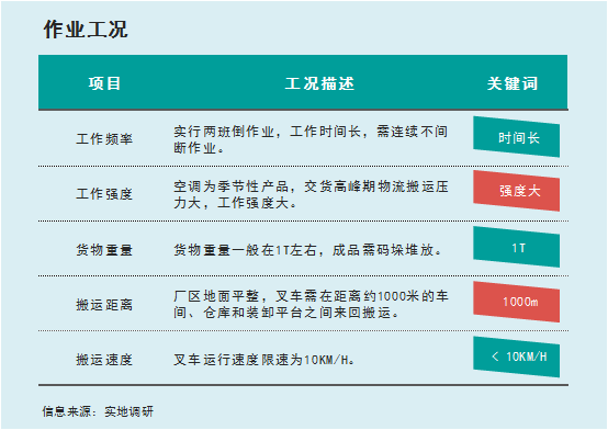 南昌基地生產(chǎn)產(chǎn)線密集,每個(gè)環(huán)節(jié)環(huán)環(huán)相扣,需要叉車連續(xù)不間斷的來回搬運(yùn),整體工況良好,具體如下: